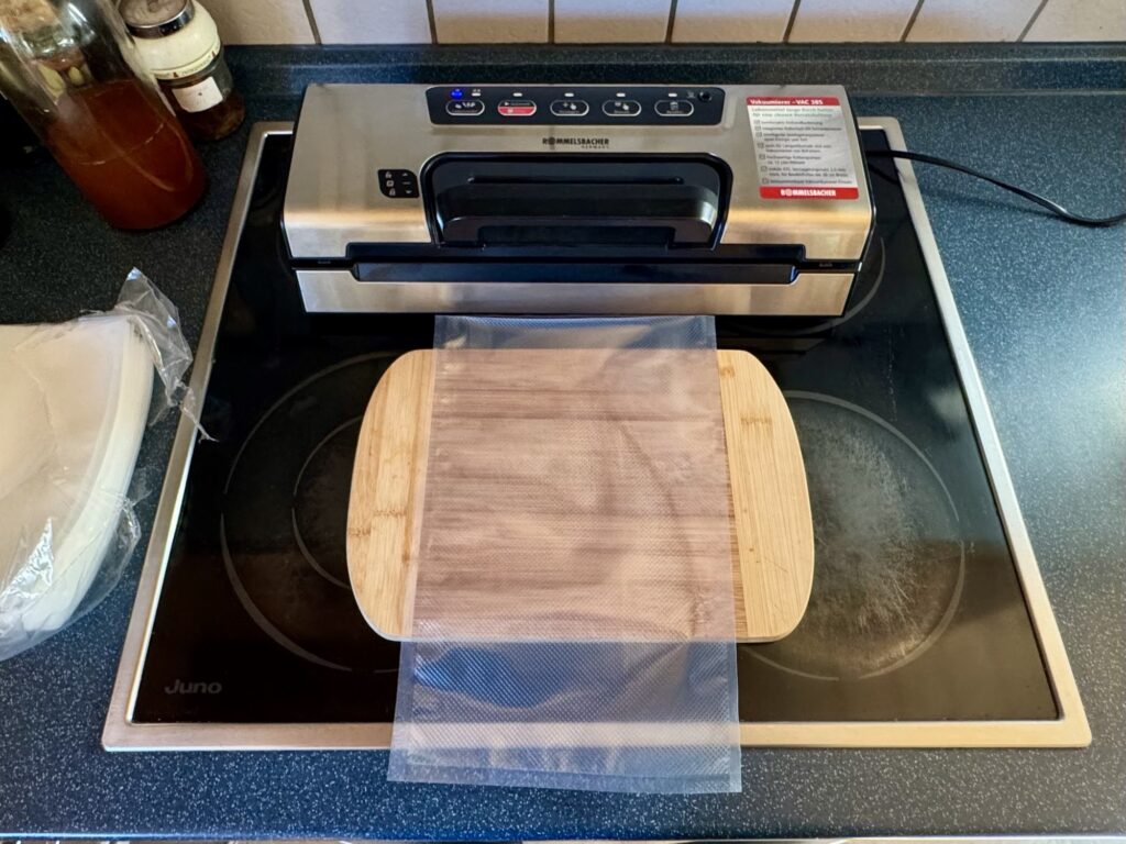 Ich benutze auch etwas günstigere Beutel in der gleichen Größe für Dinge, die nicht sofort durchstechen und den Beutel undicht machen: Vakuumierbeutel einfach*