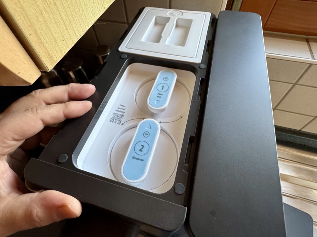 Hier sind die Filter Kartuschen zu sehen, wenn man den Deckel oben abnimmt.