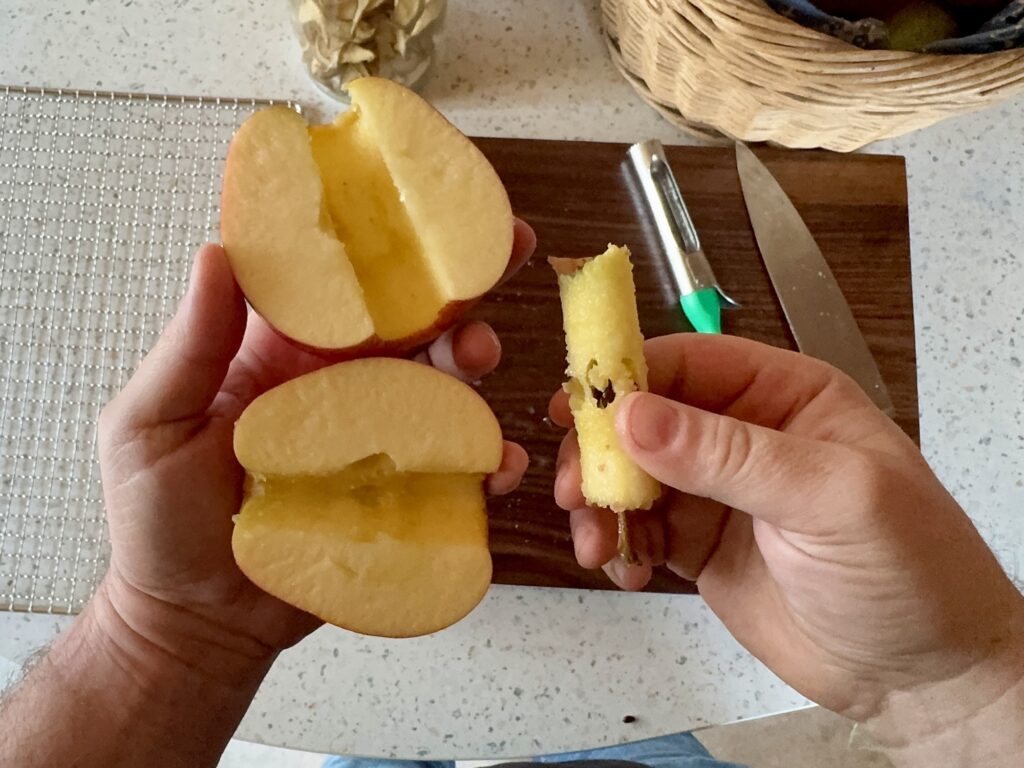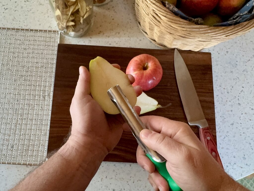 Beim Entkernen nutze ich diesen Kerngehäuseentferner*, aber ich setze ihn unterschiedlich ein: